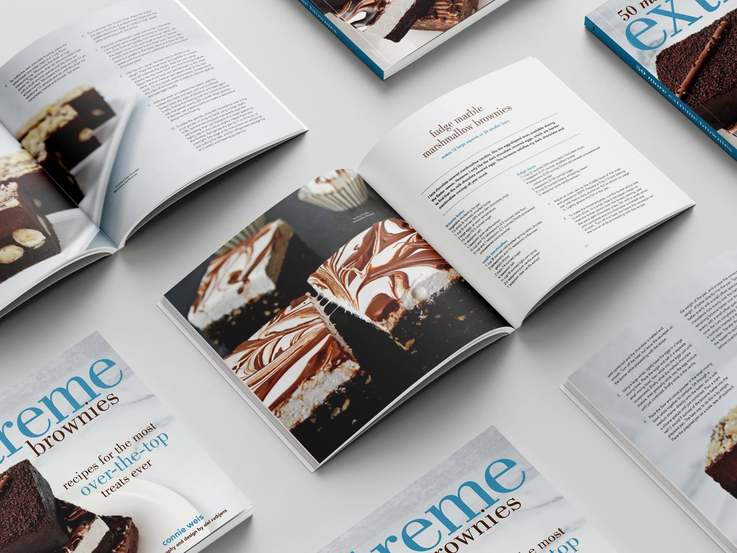 Published and sold worldwide in print and digital book formats. All original photography is meant to highlight the product’s best features and get you drooling. The serif heading contributes to the elevated feel while the sans serif body keeps it looking modern and clean. Use of line and color subheadings separate elements in the page to contribute to legibility and ease of use.